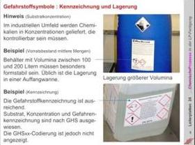 Ergänzend sind Sicherheitsanforderungen im Umgang mit chemischen Stoffen inklusive der Anforderungen an das Handling und die Entsorgung Teil des Seminarinhalts.