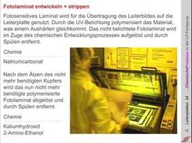 Kupferätzen mit Ammoniumsulfat zur Strukturierung des Leiterbildes. Zinnstripper auf der Basis von Salpetersäure zur Entfernung von Metallresisten. Galvanotechnisches Kontaktieren von Leiterplatten als komplexe Reaktionskette.