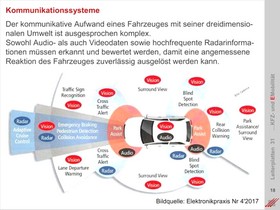 Der kommunikative Aufwand eines Fahrzeuges mit seiner dreidimensionalen Umwelt ist jedoch ausgesprochen komplex. Audio-, Video- und Radarinformationen müssen erkannt und bewertet werden, damit die angemessene Reaktion eines Fahrzeuges ausgelöst werden kann.