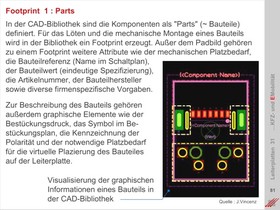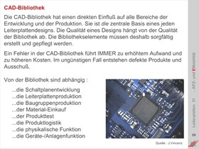 Basisdefinitionen für elementare geometrische Strukturen in der Bibliothek des CAD-Systems als Grundlage für die virtuelle Anlage von Bauteilen. Referenzen zwischen der Bibliothek und der Leiterplatten- und Baugruppenproduktion.