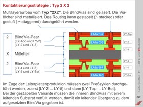 Kontaktierungsstrategien auf hochlagigen Multilayern mit Referenz zur Fertigungstechnologie. Möglichkeiten der Lasertechnik bei der Konstruktion von Multilayern mit gestapelten und/oder gestuften BlindVias. Konventionell gebohrte BuriedVias, BlindVias und DKs.