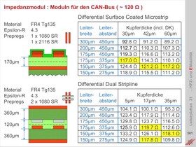 Erläuterung aller konventionellen Impedanzmoduln. Single Ended Impedanzen für 40, 50, 65 und 75 Ohm. Differentielle Impedanzen für 80, 90, 100 und 120 Ohm. Umsetzung typischer Impedanzwerte in geometrische Moduln für die Konstruktion von Multilayern.