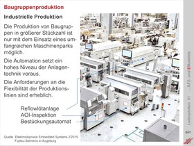 Einführung in die Produktion elektronischer Baugruppen. Anlagentechnologie und üblicher Prozeßablauf. Fehler in der Baugruppenproduktion als Folge unzureichender geometrischer Vorgaben aus der CAD-Bibliothek. Tombstoning. HiP-Effekte. Zuverlässigkeitsverluste.