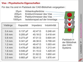 Physikalische Eigenschaften von Vias für den Lagenwechsel von Leiterbahnen. Berechnung der Kapazität, Impedanz und Induktivität in der realen Umgebung auf Multilayern. Parameterintervalle in Abhängigkeit von der Vialänge.