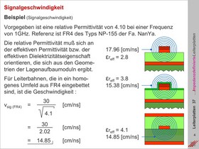 Auswirkung der kritischen Weglängen auf den Signaltransfer. Abhängigkeit der Weglänge von der Permittivität / dem Dielektrikum des Basismaterials. Kopplung der Signallaufzeit (propagation delay) an das Basismaterial der Leiterplatte.