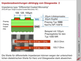 Grundeigenschaften von Prepregs. Laufzeitverzögerungen durch ungeeignete Glasgewebe bei differentiellem Signaltransfer. Gewebetypen und Prepregvarianten mit unterschiedlicher Harzdicke. Impedanztoleranzen abhängig vom Harzgehalt und vom Preßprozeß.