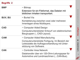 Begriffe, Definitionen und Regeln werden anschaulich erklärt. Wegen der internationalen Ausrichtung, Fertigung und Beschaffung von Leiterplatten und elektronischen Baugruppen sind viele Fachbegriffe auch englischsprachig aufgeführt.