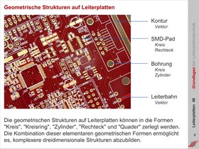 Die Umsetzung komplexer Leiterbilder auf geometrische Grundformen. Mögliche Berechnungen technisch-physikalischer Eigenschaften von Leiterplatten auf der Basis mathematischer Grundregeln.