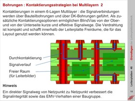 Kontaktierte und nichtkontaktierte Bohrungen. Definition des "Aspect Ratio" für die Berechnung des Durchmessers und der kontaktierbaren Hülsenlänge für Buried Vias, Blind Vias und THTs. Strategische Vorteile sequentieller Kontaktierungen.