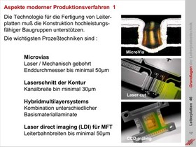 Aspekte moderner Produktionsverfahren für die Herstellung hochleistungsfähiger Leiterplatten. Anforderungen an die Leistungsfähigkeit der Anlagentechnik eines Leiterplattenherstellers als Folge der Miniaturisierung elektronischer Komponenten.