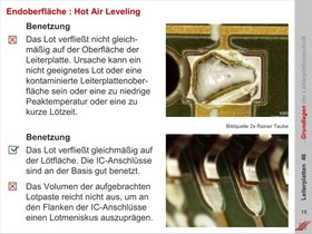 Elementare Bauformen für elektronische Bauteile. Ausprägung unterschiedlicher Lötflächen für die Montage der Bauteile auf der Leiterplatte. Der Einfluß der Leiterplattenoberfläche auf die Qualität einer Lötverbindung.
