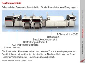 Grundkonfiguration der Anlagentechnologie für die Bestückung von Leiterplatten mit elektromechanischen Komponenten.