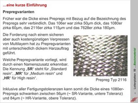 Übersicht zu Glasgeweben für die Fertigung von Basismaterialien. Grundlegende technische Eigenschaften von Prepregs. Dicken von Harzbeschichtungen auf
