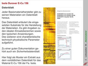 Exemplarische Erläuterung von Basismaterialdatenblättern. Interpretation der gelisteten technischen Parameter aktueller Basismaterialien.