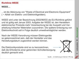 Eine kurze Einführung in die EU-Richtlinien "RoHS 2" und "WEEE". Forderungen an die Produktion von Leiterplatten und Baugruppen. Forderungen an die fachgerechte Kenntlichmachung und Entsorgung elektronischer Baugruppen.