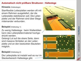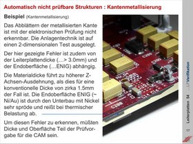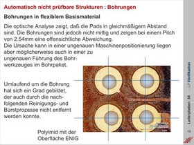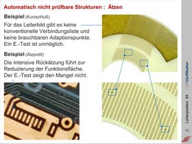 Automatisch nicht prüfbare Leiterbildstrukturen auf Leiterplatten. Elektronisch nicht erkennbare Fehler. Nicht detektierbare Abweichungen vom Leiterbildquerschnitt durch die Rückätzung.