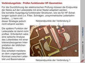 Grundstrategien der elektronischen Prüfung. Optisch nicht vollständig prüfbare Geometrien bei HF-Schaltungen. Adaptierung von Netzpunkten. Datatransfer von Verbindungen. Funktionale Geometrien.