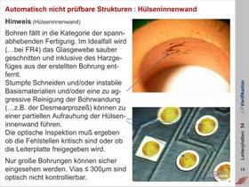 Möglichkeiten der Inspektion der Hülsen von THT-Bohrungen und Vias. Erkennbarkeit von Fehlbelegungen hinsichtlich der Kupferdicke und der galvanischen Oberfläche von Bohrhülsen.