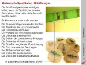 Verifikation mechanischer Eigenschaften von Multilayern über die Interpretation von Schliffbildern. Optionen der Leiterplattenanalyse auf der Basis von Feinschliffen. Kontrolle und Rückannotation zur Fertigung in der Produktion von Leiterplatten und Baugruppen.