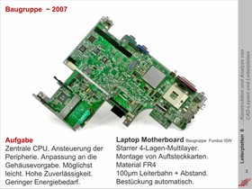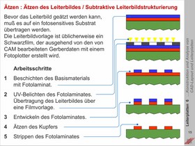 Exemplarische Dokumentation von einfachen ein- und doppelseitigen Leiterplatten bis hin zu komplexen Multilayern. Grafische Beschreibung des Aufbaus von Multilayersystemen. Dokumentation elementarer physikalischer Eigenschaften.
