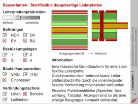 Allgemeine Strategien für den Aufbau von starren, flexiblen und starr-flexiblen ein- und doppelseitigen Leiterplatten sowie Multilayern. Einordnung nach Bohrstrategien, nach Montagetechnologien und nach Bestückungsebenen.