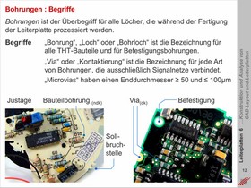 Erläuterung der unterschiedlichen Bohrklassen und Bohrtypen, die bei der Konstruktion einer Baugruppe eingesetzt werden können. Justagebohrungen für die Montage im Gehäuse, Verdrehschutz für die Bestückung. Varianten für dk- sowie Blind- und Buried Vias.