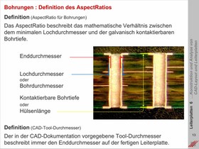 Erläuterung der Hintergründe für die wichtige Formulierung des Aspect Ratios für Bohrungen. Vorgaben für die Auswahl des Vias im Vorfeld der Erstellung des CAD-Layouts für eine Baugruppe. Definition und Berechnung des minimalen Viadurchmessers.