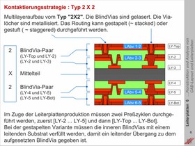 Kontaktierungsstrategien auf hochlagigen Multilayern mit Referenz zur Fertigungstechnologie. Möglichkeiten der Lasertechnik bei der Konstruktion von Multilayern mit gestapelten und/oder gestuften Blind Vias. Konventionell gebohrte Buried Vias, Blind Vias und DKs.