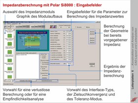 Erläuterung aller konventionellen Impedanzmoduln. Single Ended für 50, 65 und 75 Ohm, Differentielle Impedanzen für 90 und 100 Ohm. Umsetzung typischer Impedanzwerte in geometrische Moduln für die Konstruktion von Multilayern. Eigene Berechnungen.
