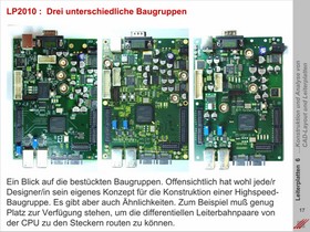 "Die Leiterplatte 2010" ist ein Referenzprojekt für die wohlüberlegte Entwicklung einer High-Speed-Baugruppe. Die Ergebnisse aus diesem Projekt sind hilfreich für das Konzept und die Planung einer anspruchsvollen Baugruppe, die wirtschaftliche und physikalische Bedingungen erfüllen muß.