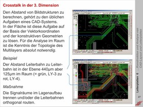 Analytische Bewertung des Routings von Signalleiterbahnen unter Beachtung der 3-Dimensionalität eines Multilayer-Lagenaufbaus. Berücksichtigung des Crosstalks in Z-Richtung. Regeln für das Routen impedanzdefinierter Leiterbahnen.