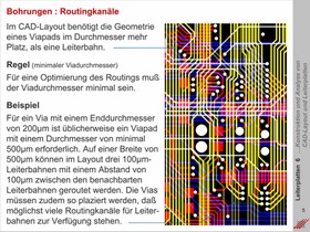 Definierte Routingkanäle und Plazierung von Vias in Clustern. Optimale Nutzung von Flächen. Anforderungen an die Geometrie von Vias.