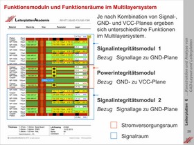 Erforderliche Funktionsbereiche auf einer Leiterplatte aus physikalischer Sicht. Vorzudefinierende Räume innerhalb eines Lagenaufbaus für die diskrete Aufnahme von Signalen (z.B. Differentielle Impedanzen) oder für den Einbau kapazitiver Stromversorgungssysteme.