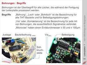 Erläuterung der unterschiedlichen Bohrklassen und Bohrtypen, die bei der Konstruktion einer Baugruppe eingesetzt werden können. Justagebohrungen für die Montage im Gehäuse, Verdrehschutz für die Bestückung. Varianten für dk- sowie Blind- und Buried Vias.