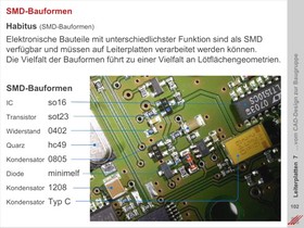 Strategien für die Konstruktion eines CAD-Designs. Designregeln für das Placement und das Routing elektronischer Komponenten. Technologien für die Bestückung und die Montage von Baugruppen. Interaktionen zwischen CAD-Design, Leiterplattenfertigung und Baugruppenproduktion