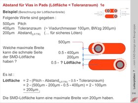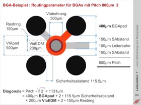 Kalkulation der Geometrien für ein spezielles Routing im CAD-Layout. Berechnung von Abständen, Vias und Lötflächen für die Routingstrategie mit VIPs (i.e. ViasInPads). Erläuternde Beispielrechnungen und Übungsaufgaben für das Selbststudium.