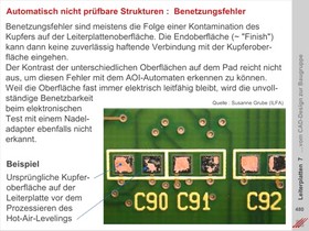 Bewertung der finalen Prüfbarkeit von Leiterplatten. Durch automatische Prüfungen nicht detektierbare Mängel auf Leiterplatten. Der Einfluß qualitativer Fehler auf die langfristige Zuverlässigkeit von Baugruppen.