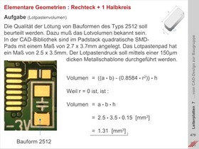 Berechnungsmodelle für die aufzubringenden Lotpastenvolumina auf einer Lötfläche. Bewertung der Lötqualität und Vorgaben für eine systematische Beurteilung von Lötprofilen und Lötergebnissen.