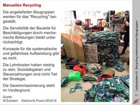 Aktuelle organisatorische Konzepte für die wirtschaftliche Bewertung zu verschrottender Elektronik. Nicht zugeordnete und nicht kontrollierbare technische Nebeneffekte.