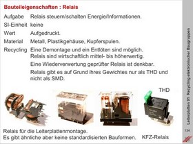 Einschätzung der Recyclingqualität mit Bezug auf die Funktion der Bauteile (Relais, Widerstände, Kondensatoren, Transistoren, Induktivitäten, usw.)
