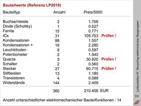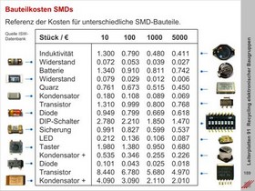 Referenz der Kosten für den Einkauf von SMD- und THD-Bauteilen in Abhängigkeit von der Anzahl der eingesetzten Bauteile in einem Bau-Gruppenprojekt als Voraussetzung für die Recycelbarkeit und die Ein-schätzung der voraussichtlich zu recycelten Werte.