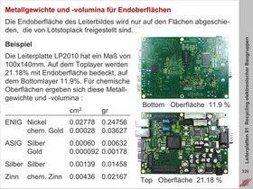 Gewichte und Volumina von Metallen, Endoberflächen und Lacken auf Leiterplatten. Volumina und chemische Zusammensetzung von Lotpasten für das Löten der SMD-Bauteile.